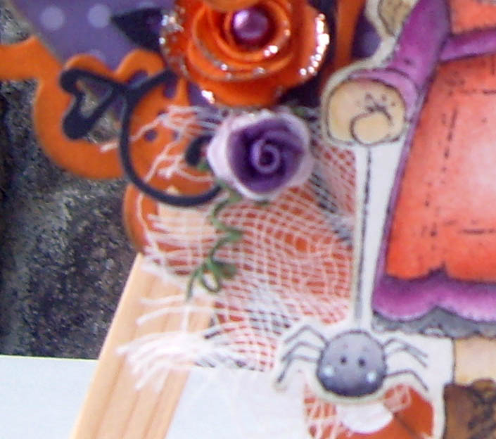 Yulis, so glad you got your mind thinking of making something for Halloween even though you don't celebrate it. This is gorgeous. Adorable Tilda image and you've coloured here beautifully. I love the itty bitty spider...LOL. Wonderful attention to details and the 3-D look of your card. The broom and the cheese cloth/gauze just add the perfect touch.